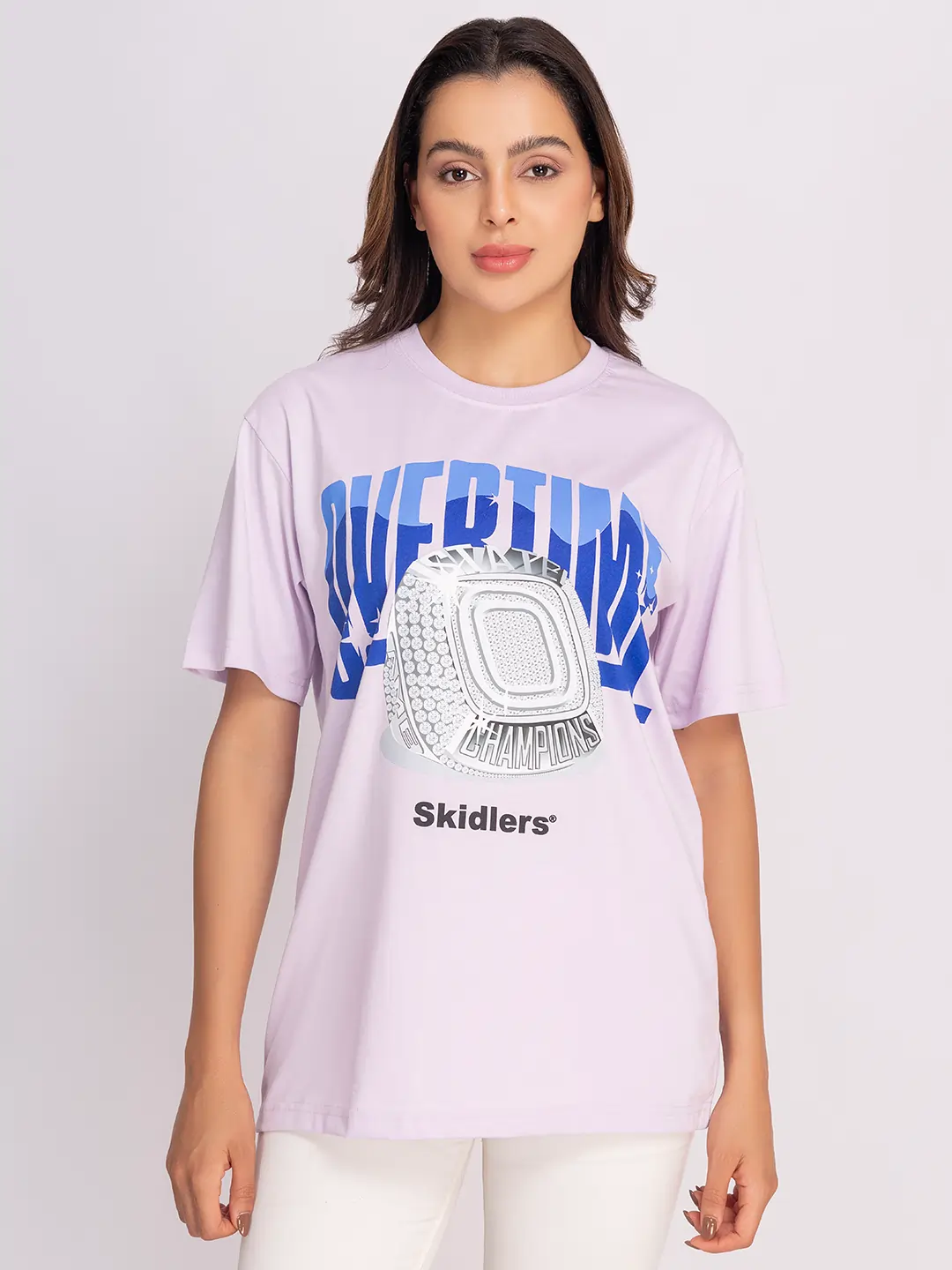 Skidlers Women Typography Printed Round Neck Cotton oversized T-shirt